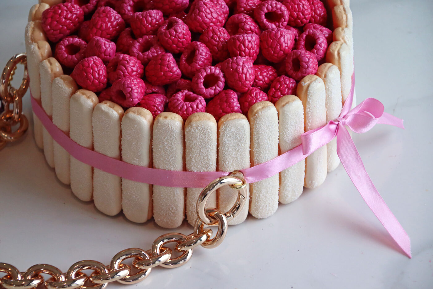 The purse comes with a golden chunky top handle + golden cross-body chain (120 cm)