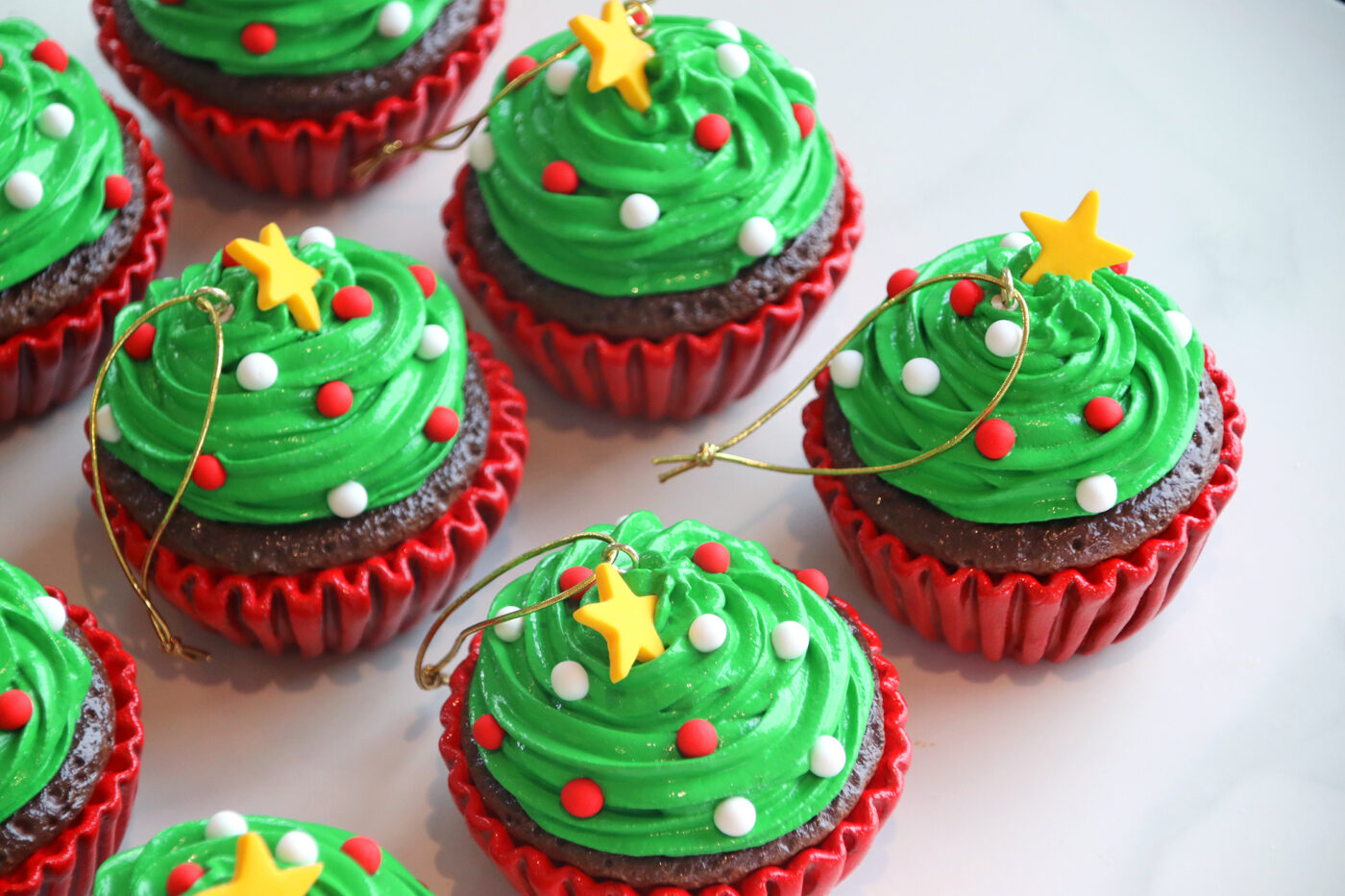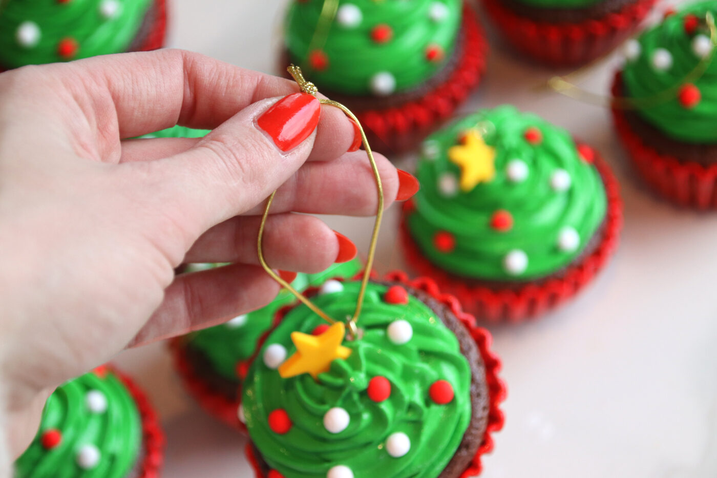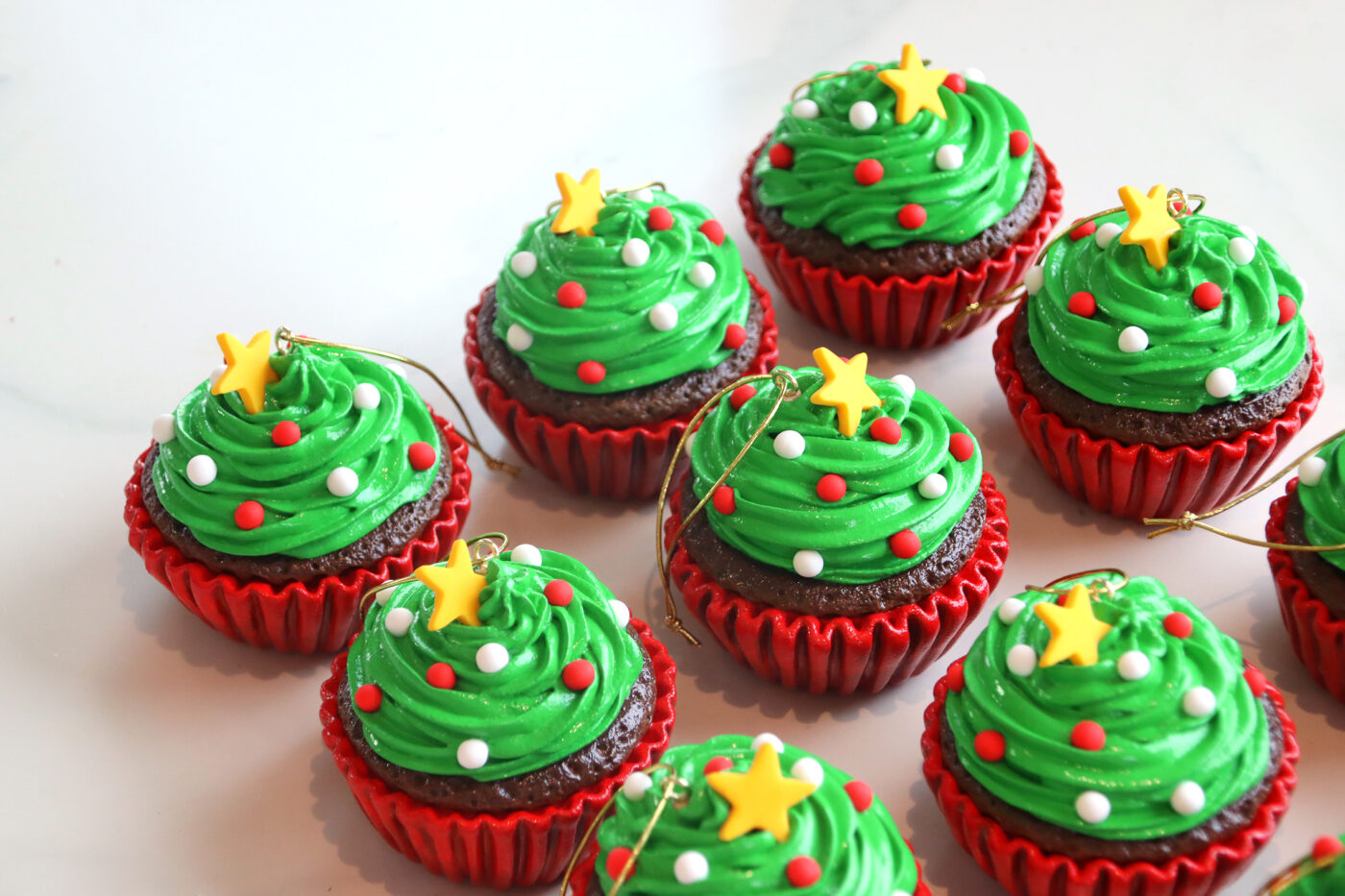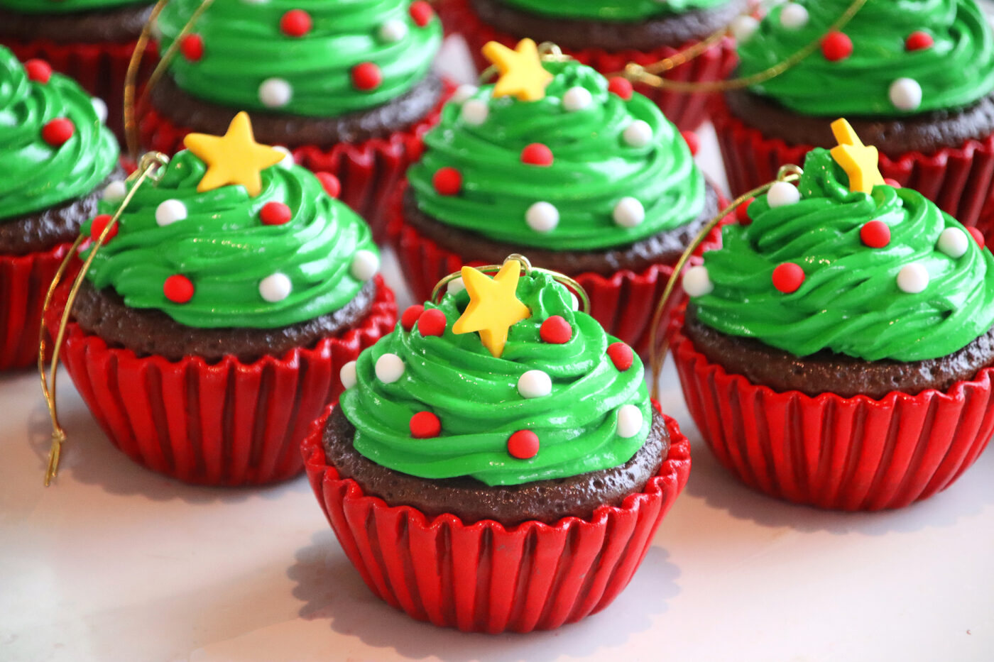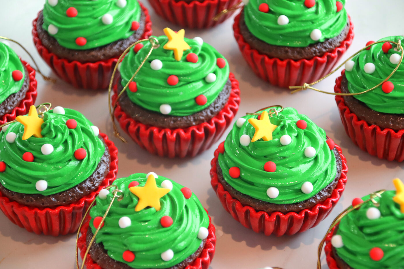 CHRISTMAS TREE CUPCAKE ORNAMENTS
