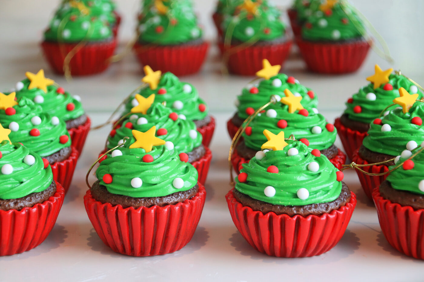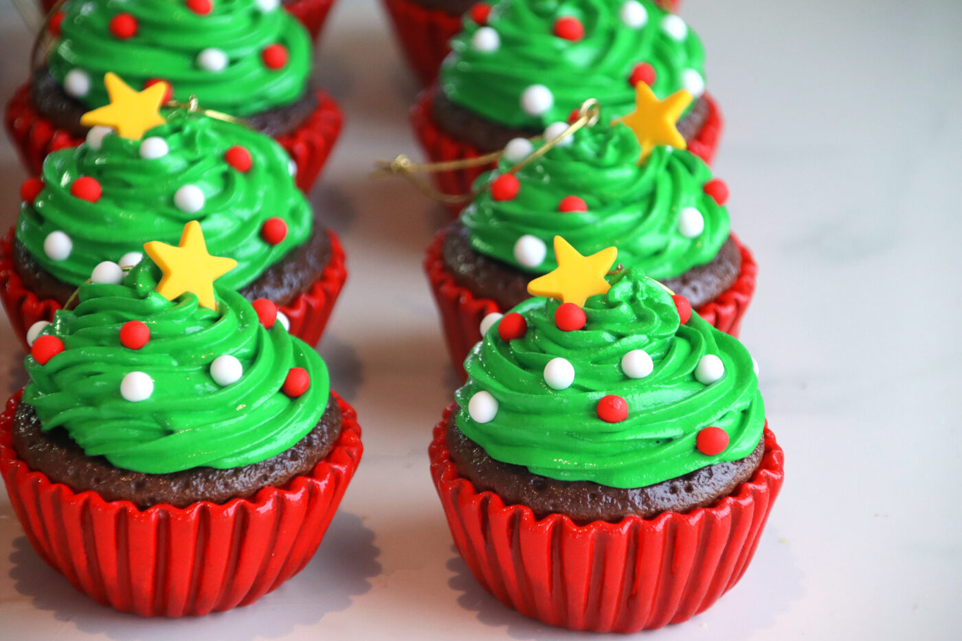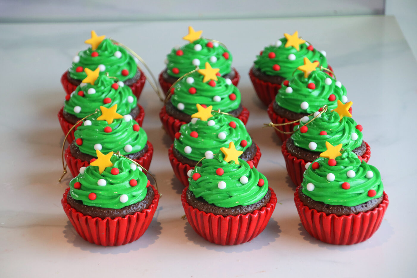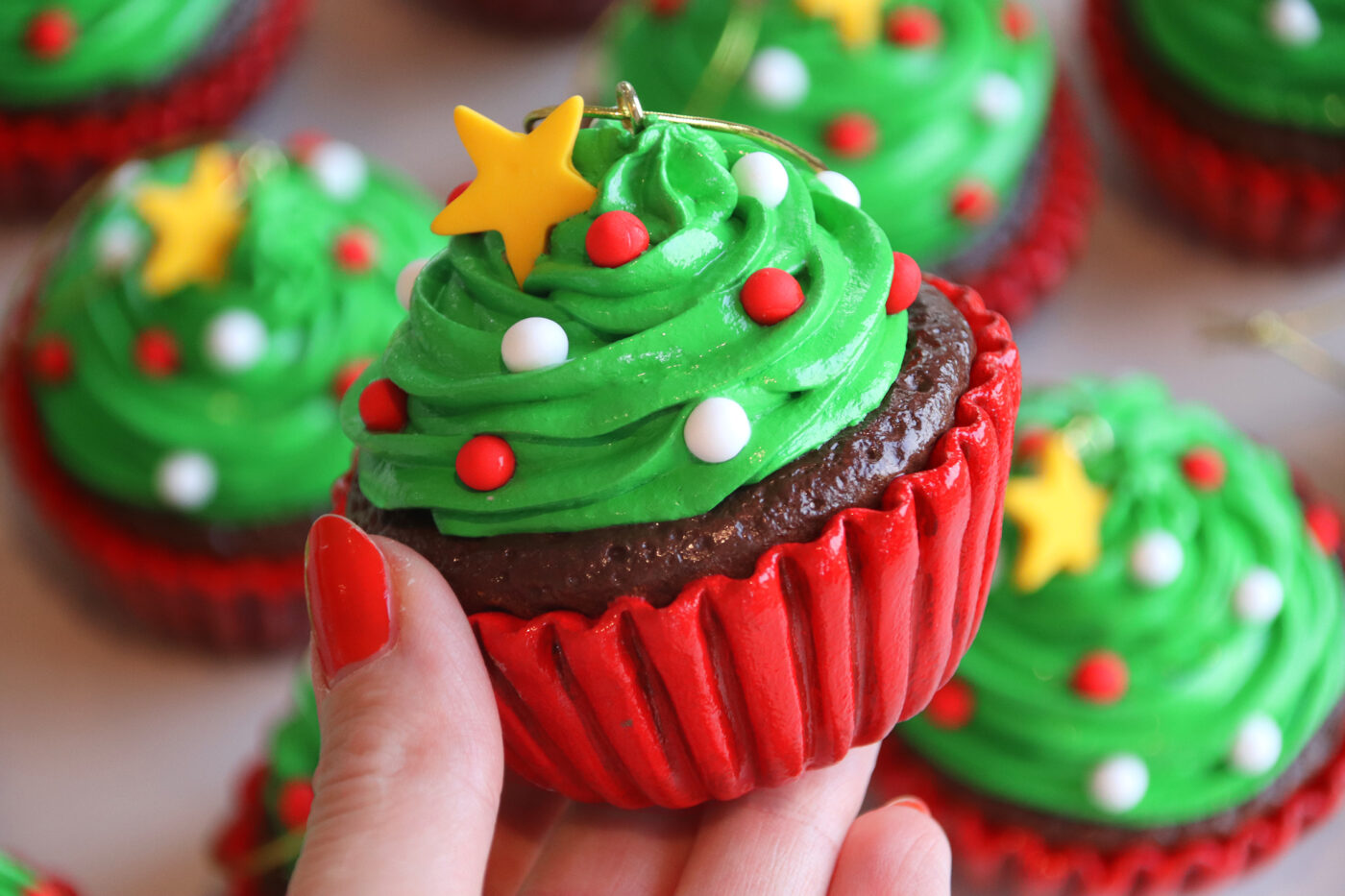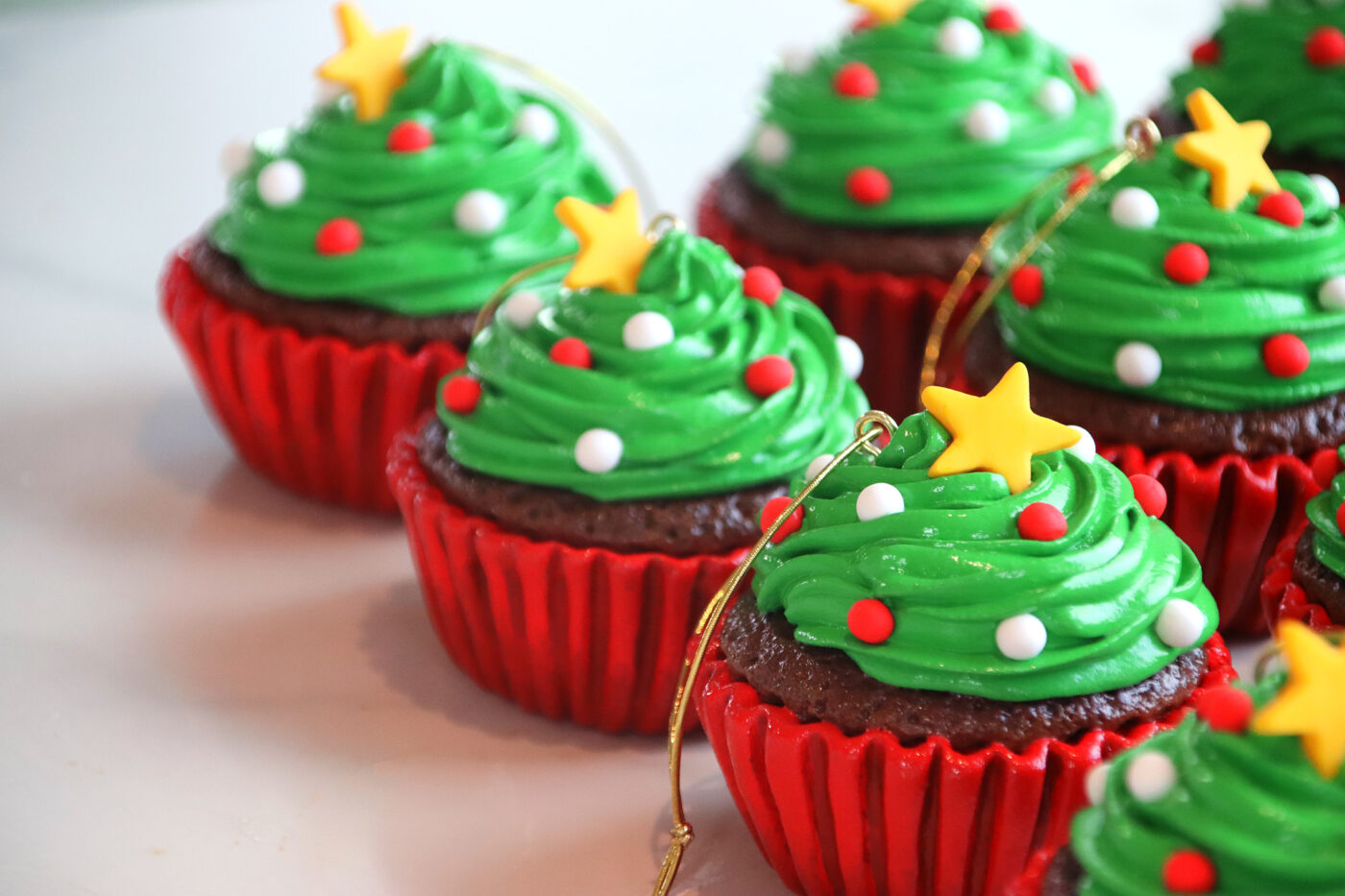 CHRISTMAS TREE CUPCAKE ORNAMENTS