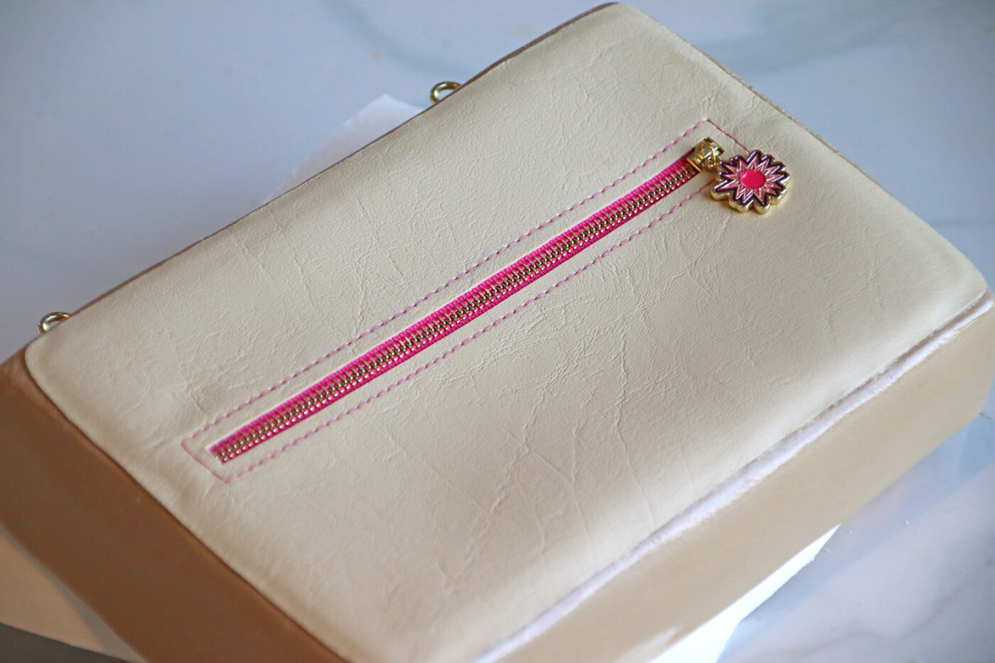 White/gold zipper