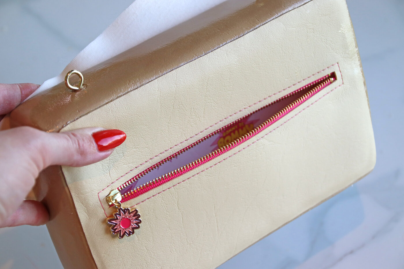 There’s some space inside for some small things like an iPhone, a small card wallet, make-up, keys and coins